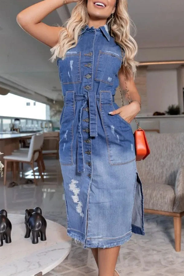 Blue Modern Cut-Out Midi Dress